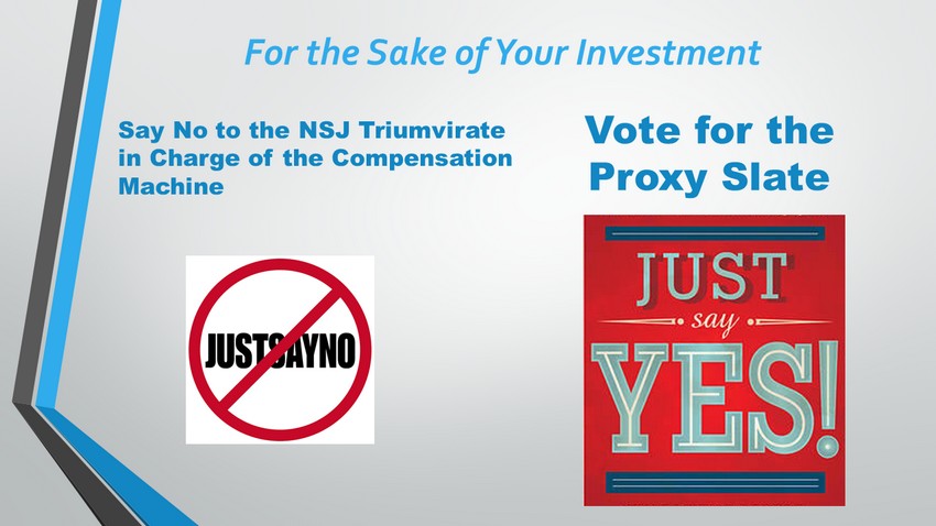For the Sake of Your Investment Say No to the NSJ Triumvirate in Charge of the Compensation Machine Vote for the Proxy Slate