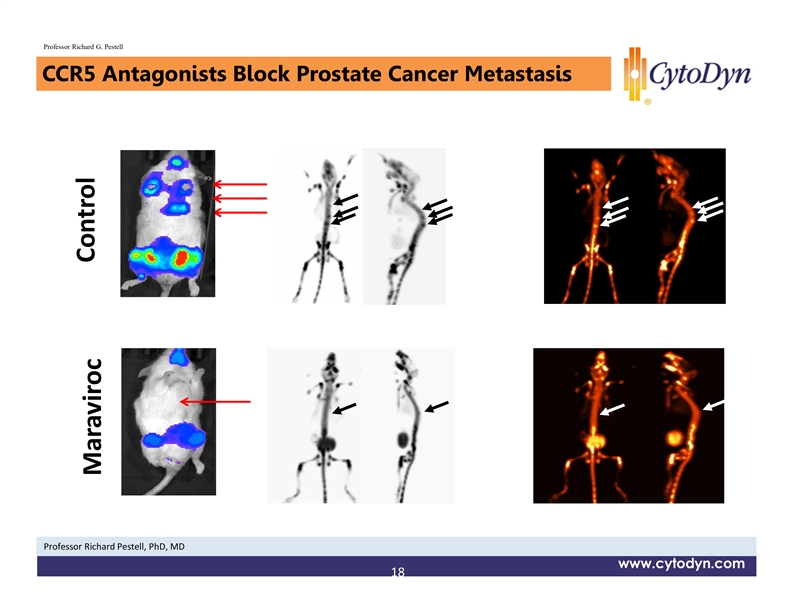 Professor Richard G. Pestell CCR5 Antagonists Block Prostate Cancer Metastasis Professor Richard Pestell, PhD, MD www.cytodyn.com 1 18 8 Control MaravirocProfessor Richard G. Pestell CCR5 Antagonists Block Prostate Cancer Metastasis Professor Richard Pestell, PhD, MD www.cytodyn.com 1 18 8 Control Maraviroc